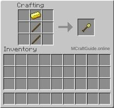 - Place two sticks under the Gold ingot, to make sticks you can place the wood planks, on upon another in the crafting table