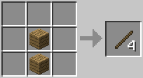 - Place two sticks under the wood plank, to make sticks you can place the wood planks, on upon another in the crafting table