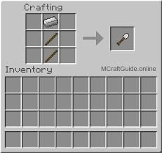 - Place two sticks under the iron ingot, to make sticks you can place the wood planks, on upon another in the crafting table
