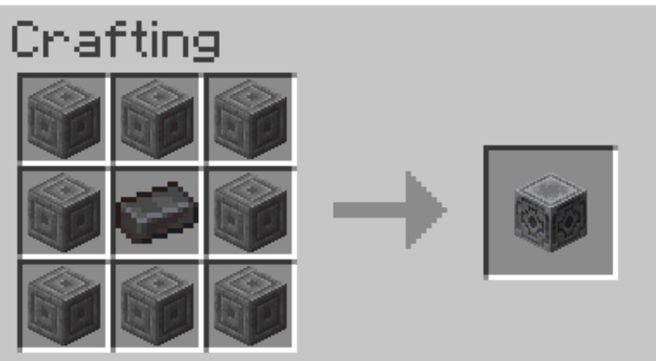 - Place netherite scraps in a L-formation in the top-left of the 3×3 grid.