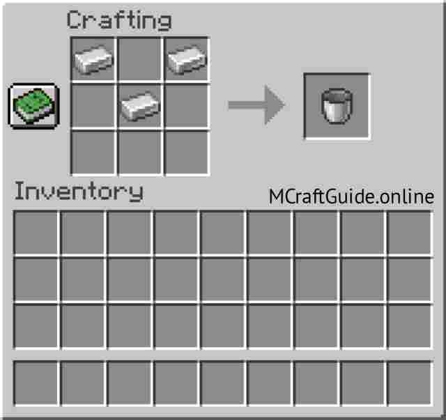 Make a bucket by placing three iron Ingots in the Crafting Table.